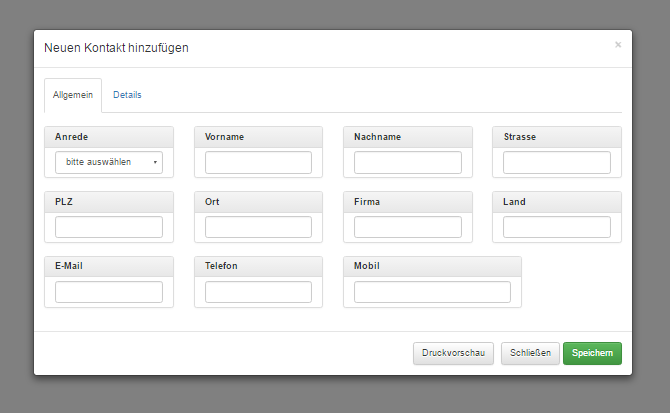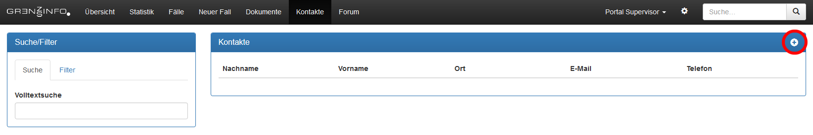 Durch Klicken auf das (+)-Symbol in der rechten Leiste öffnen Sie den Dialog zum Erstellen eines neuen Kontaktes