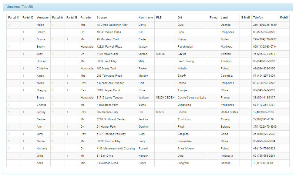 Filterung der Adressdatendank nach bestimmten Kriterien