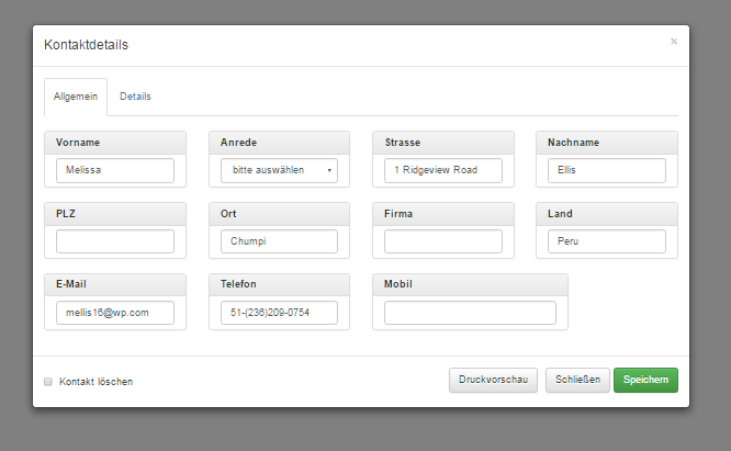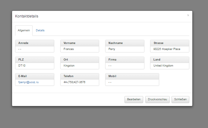 Ein Klick auf eine Tabellenzeile öffnet den Detaildialog des entsprechenden Kontaktes.