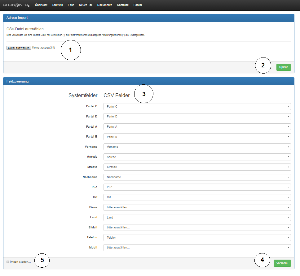 Bestehende Listen von Ansprechparntern in Form einer CVS-Datei in Adressmodul importieren. CSV-Dateien (comma-seperated-value) bestehen aus einer Kopfzeile und Datensätzen.