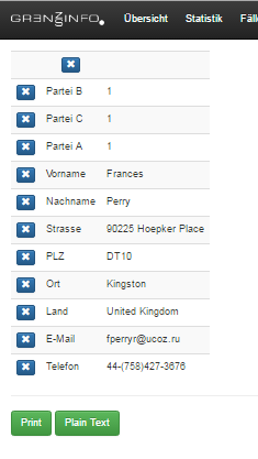 Mit der Schaltfläche "Druckvorschau" wird in ein Vorschaufenster gewechselt. Hier können die zu druckenden Details ausgewählt werden. Mit dem blauen X wird das entsprechende Detail entfernt. Zum Schluss kann in eine finale Ansicht über die zu druckenden Details eingesehen werden.