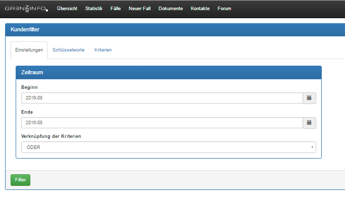 Um die Adressdatendank nach bestimmten Kriterien zu filtern (z.B. zur Versendung von Newslettern) stehen folgende Funktionen zur Verfügung: