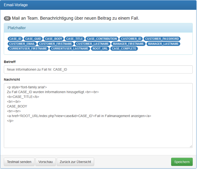 Für jede verwendete Sprache im System sollte eine jeweils dazugehörige System-E-Mail verfasst werden.