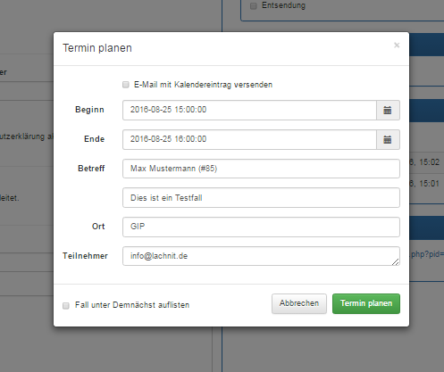 | CASE_COMPLETE | Komplette Fallzusammenstellung zwecks Weiterleitung an einen externen Experten |