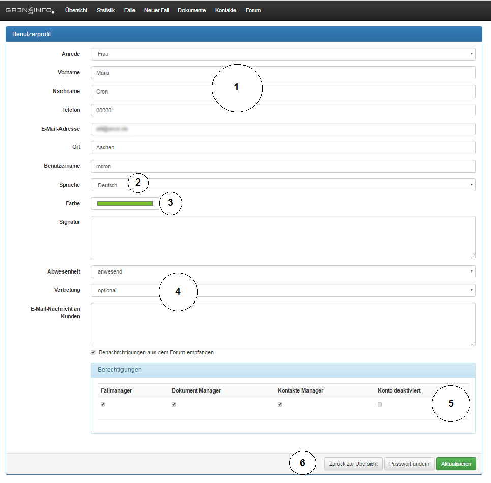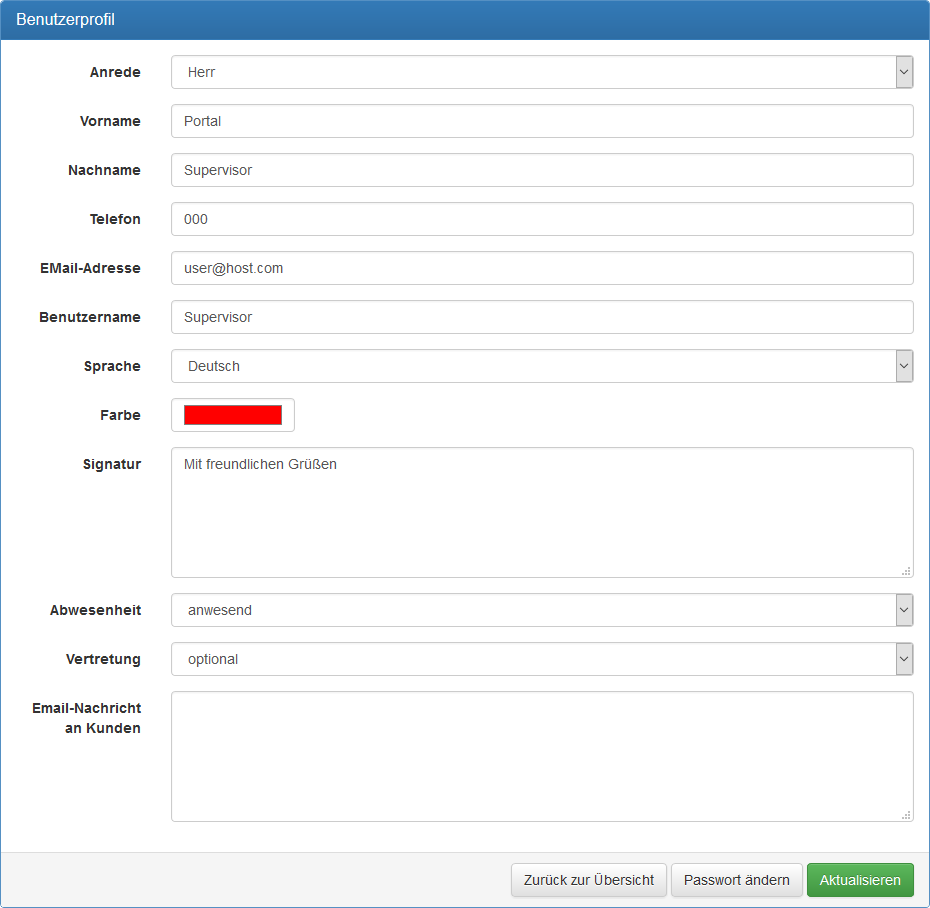 Formularfelder für persönliche Angaben von "Anrede" bis "Benutzername" enthalten die entsprechenden Daten.