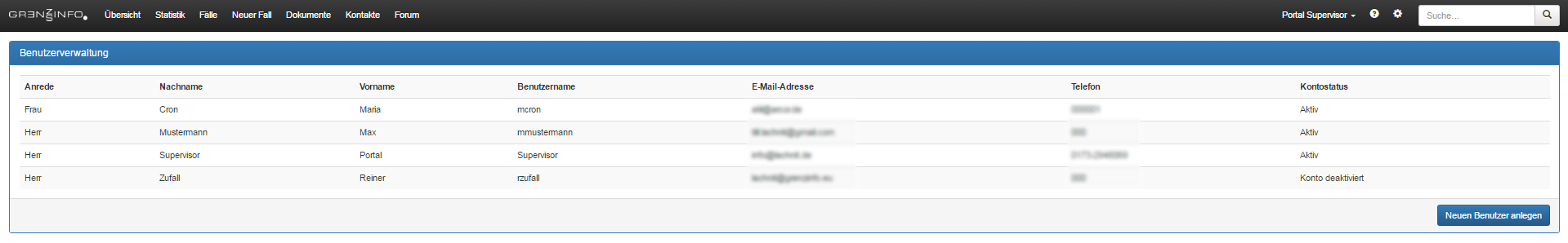 Es werden aufgelistet:Die 10 aktuellsten Fälle im System.